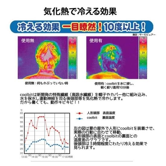 coolbit クールビットは新開発の特殊繊維(高吸水繊維)を帽子カバー他に組み込み、
