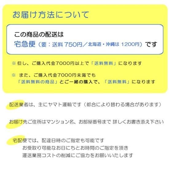 この商品は、宅急便(送料本州750円、北海道沖縄1,200円)で配達させて頂きます。